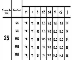 سوراخ ( پیچ ) نرمال برای کابلشو سایز 25 سوراخ 8 میباشد و سوراخ های سفارشی این سایز عبارتند از : سوراخ 6 ، 10 ، 12 و 14 .